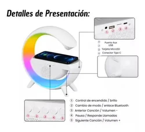 Cargador Inalámbrico Celular Con Parlante Y Luz Led Bt2301